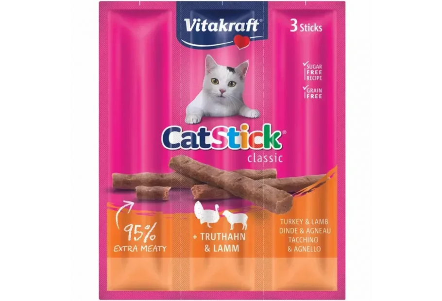 М'ясні палички Vitakraft Cat Stick + Truthahn & Lamm – кулінарний шедевр для котика!