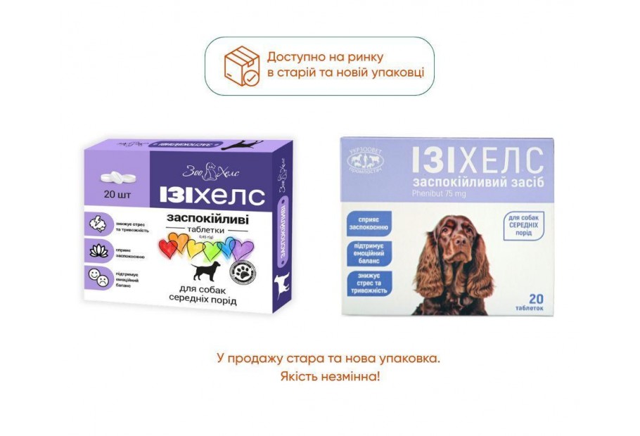ИЗИХЕЛС для собак средних пород (таблетки по 0,45 г): по 20 таблеток в блистере, по 1 блистеру в пачке.