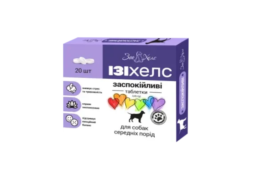 Изихелс ЗооХелс – Успокаивающие таблетки для собак средних пород табл. 0,45 г – 20 т.