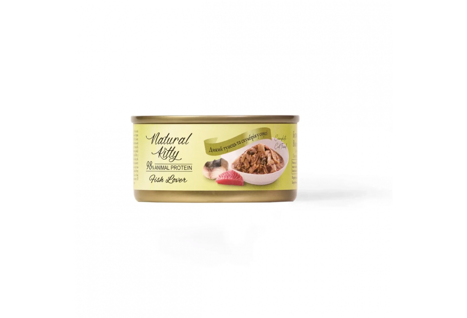 Влажный полнорационный корм для кошек Natural Kitty Meat Lover mackerel and tuna in gravy с диким тунцем и скумбрией в соусе, 70г