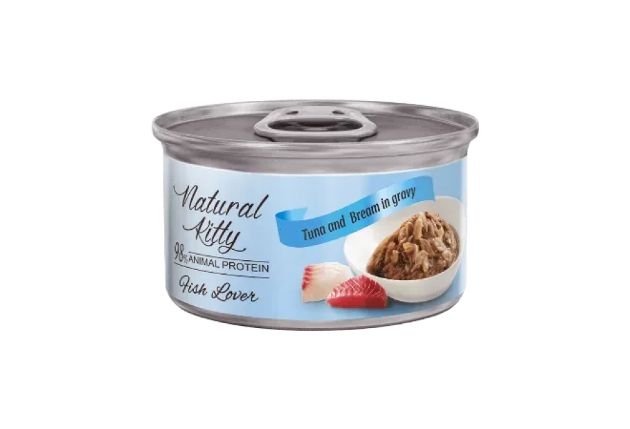 Влажный полнорационный корм для кошек Natural Kitty Meat Lover tuna and bream in gravy с диким тунцем и лещом в соусе, 70г